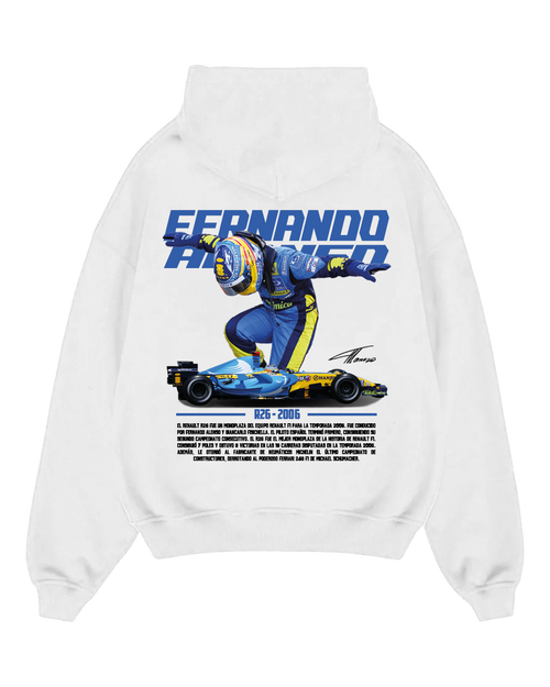 Polera Fernando Alonso Campeón F1 Renault R26 Blanca Oversize -