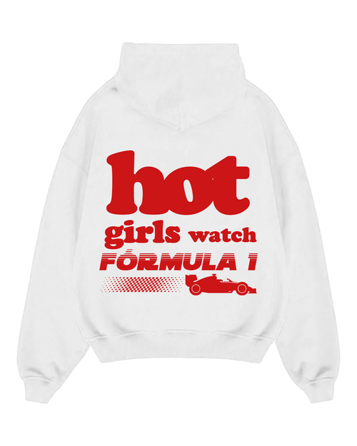 Polera Hot Girls Watch F1 Blanca Oversize -